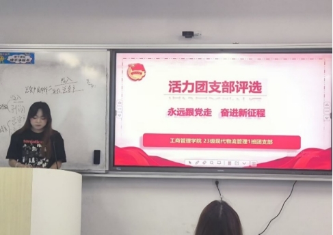 为深入推进基层团支部建设,展现青年学子蓬勃朝气,5月12日,工商管理学院“活力团支部”院赛在一号教学楼207教室火热开赛。23现代物流管理一班、24智能物流技术一班、23连锁经营管理一班、23人力资源管理二班四个团支部以演讲的形式展示支部风采,用青春之名诠释新时代共青团组织的凝聚力与创造力。