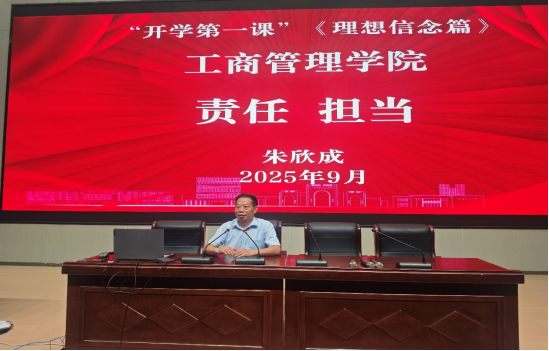 开学典礼在热烈的氛围中圆满落幕。典礼结束后,马克思主义学院院长朱欣成教授为我院2025级新生做题为“责任担当”的开学第一课之理想信念教育讲座。朱教授从加强自我管理、学好专业知识、提升综合素质三方面积极引导学生深刻把握理想信念的实践意义,循序渐进解读责任担当的现实要求,启发学生如何在新时代坚定信念、担当使命。这场理想信念教育不仅是新生迈入大学的思想启航课,更是一堂青春成长课。它帮助新生在思想洗礼中坚定方向,在实践磨砺中积蓄力量。